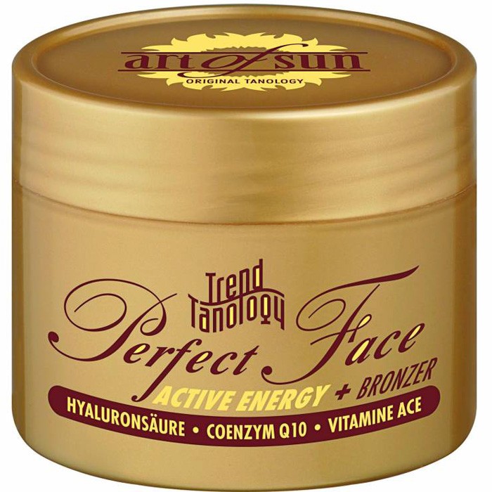Доглядаючий крем Perfect Face для бронзового загару особи і декольте з 3-ми бронзаторами. Комбінація діючих компонентів засобу (коензим Q10, гіалуронова кислота, вітаміни А, З, Е) активізує поглинання кисню клітинами і сприяє самостійній регенерації шкіри. Одночасно збільшується здатність шкіри зберігати вологу і посилюється насиченість загару.