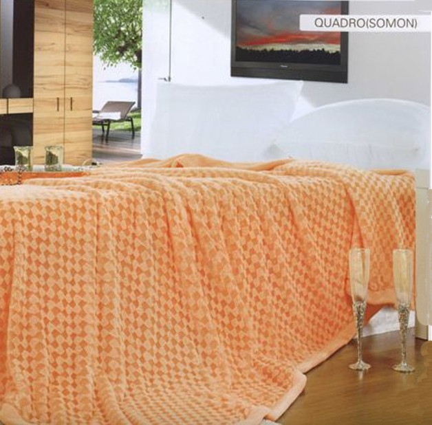 Теплий і м'який плед приємним білим забарвлення з ефектом Qadro (рельєфна фактура пледа, схожа на шахову дошку) прекрасно зігрієвасхолодними, зимовими вечорами.