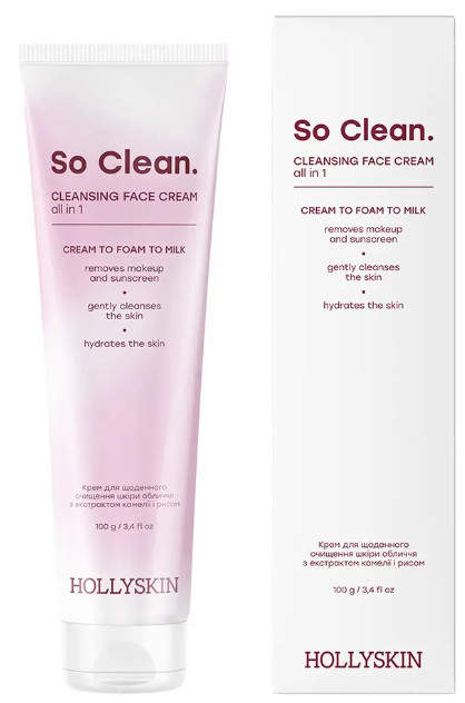 Крем для щоденного очищення шкіри обличчя So Clean. з екстрактом камелії та рисом. Видаляє всі види забруднень, у тому числі макіяж та SPF, ніжно зволожує, доглядає шкіру, зберігає свіжість, злегка матує.