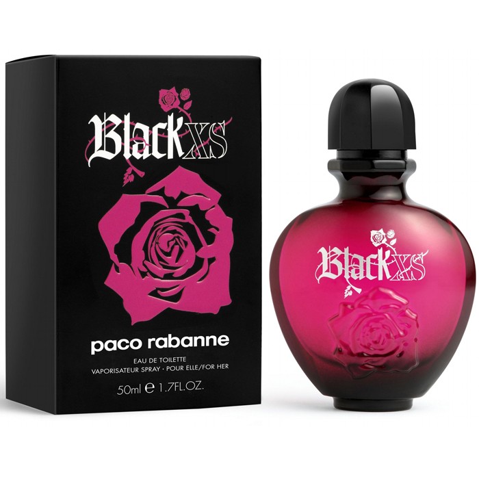 Black XS pour femme – чуттєвий і жіночний парфюм, що розкривається від фруктово-квіткових до деревних акордів. Аромат містить таємничий компонент – чорну чемерицю, яка по наданнях, справляє враження галюциногена і застосовувалася відьмами при виготовленні зелий.