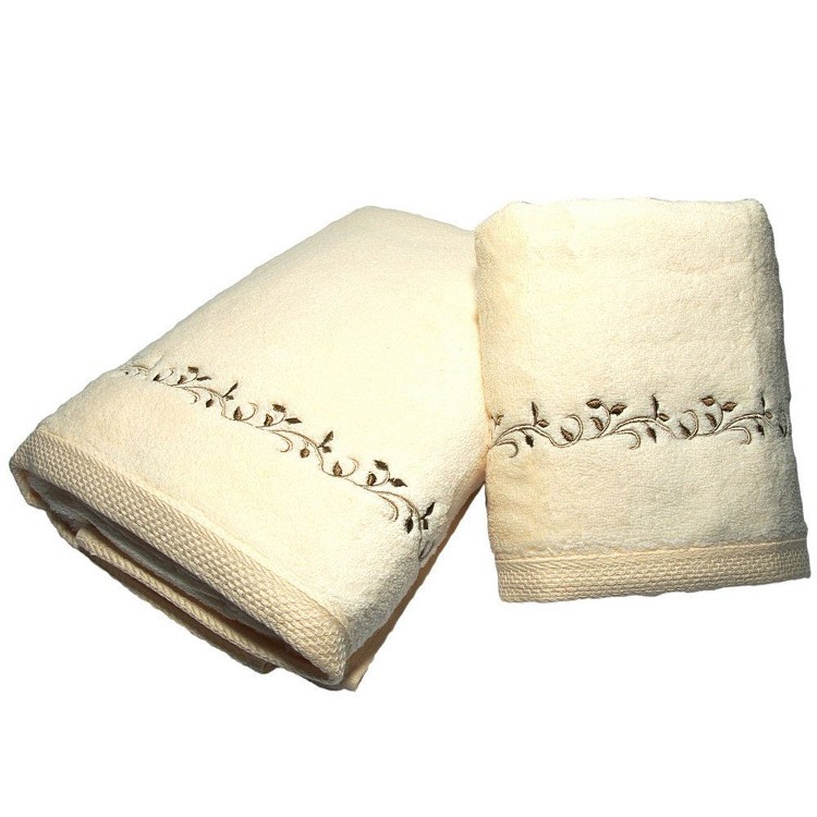 Набор складається з двох білих рушників, прикрашених легкою вишивкою у вигляді весняних гілочок.