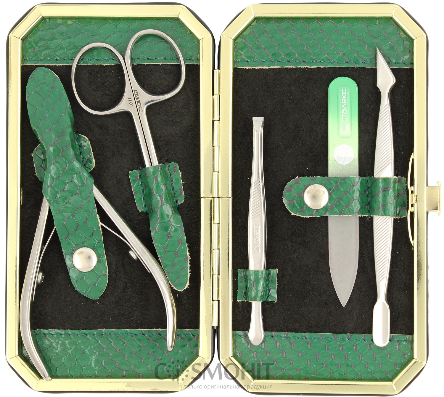 Стильний манікюрний набір Сталекс Ultra MS-04/1 виконаний у вигляді рамки з натуральної шкіри, всередині якого ви знайдете 5 ідеально заточених предметів для манікюру.