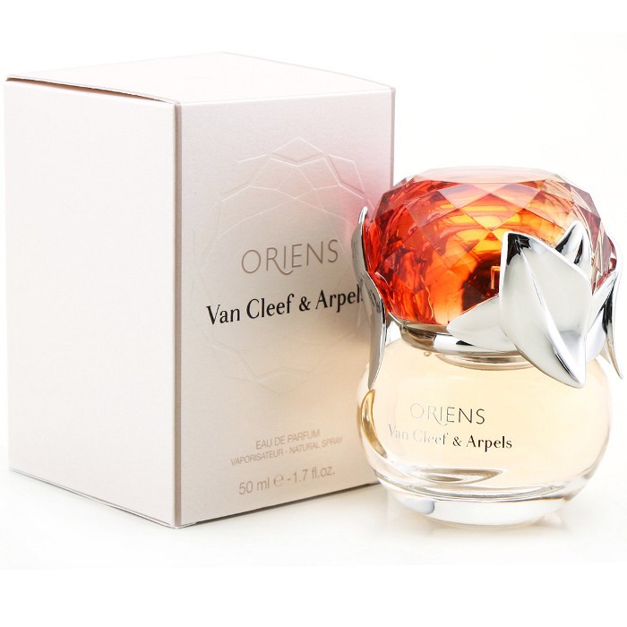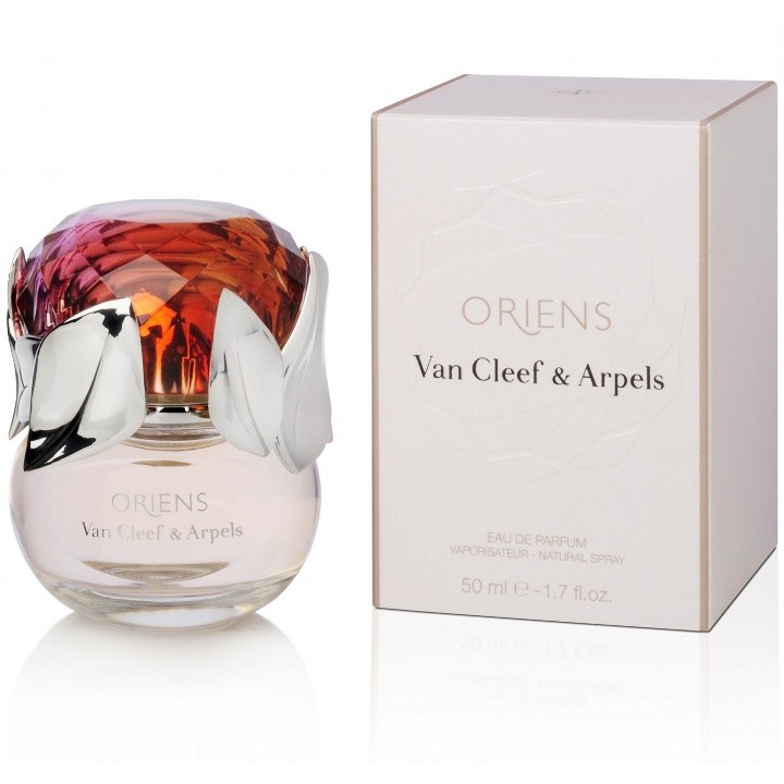 Van Cleef & Arpels Oriens, здавалося, був створений тільки для того, щоб вводити в оману і дезорієнтувати. Своє "східне" назва аромат отримав на честь знаменитого Шовкового Шляху, з його постійною магією і чарівністю. Таємниці і загадки, пов'язані з цією легендарною торгової дорогою, привертають до себе увагу протягом кількох століть. Van Cleef & Arpels пропонує свій образ цього Східного Шляху, представляючи Oriens в образі дорогоцінного персня, прикрашеного величезним турмаліном і обрамленого в квітковий узор білого золота і діамантів. Різнобарвний флакон, який грає красивими зеленими, рожевими і помаранчевими тонами, символізує мінливу душу Сходу. Пікантність Oriens надає і дизайнерська упаковка. Спеціально для нового запаху корпорації Van Cleef & Arpels дизайнер Джоелу Десгіппес прикрасив флакон турмаліном.